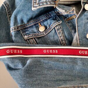 GUESS Denim Cropped Jean Jacket Logo detail on each sleeve in great condition. Women's size XL