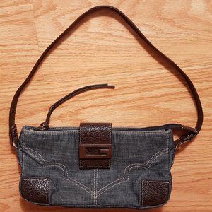 GUESS Denim and leather purse with G brass buckle