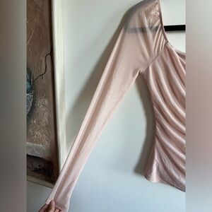 The Guess Pink Ruched Long Sleeve Blouse is a stylish addition to any wardrobe, featuring a fitted design with elegant ruching down the center. Crafted from a lightweight, smooth fabric, this blouse offers a flattering silhouette and a touch of sophistication. Its full-length sleeves and subtle V-neckline add to its romantic charm, making it a versatile piece for various occasions.