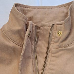 GUESS Factory womens MOTO JACKET BEIGE Size SMALL CANVAS coat **COLOR = BEIGE**