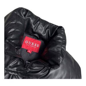 GUESS Faux Vegan Leather Black Designer Winter Puffer Parka Vest Womens XL