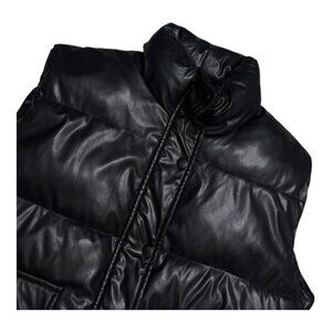 GUESS Faux Vegan Leather Black Designer Winter Puffer Parka Vest