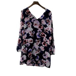 GUESS Floral V Neck Mini Dress Blue Size XS