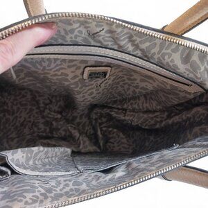 GUESS Garland Ivory Faux Pebbled Leather Tote Bag – Leopard Lining, Silver Chain