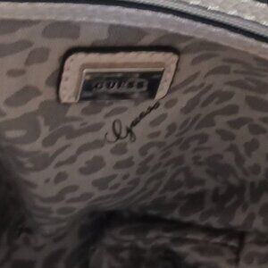 The interior is lined with signature GUESS leopard logo fabric and includes one zip pocket and three slip pockets to keep essentials organized. Originally came with a leather crossbody strap — replaced with a 46" silver chain strap that doubles as a stylish front drape when not in use.