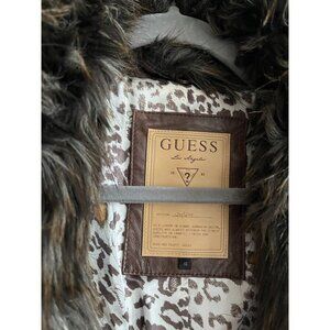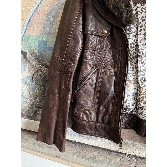 GUESS Genuine Leather Fur-Trim Neckline Brown leather jacket size S