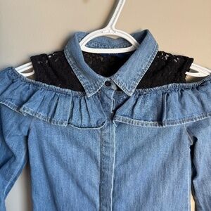 GUESS Girl's 8 Denim Cold Shoulder Button Front Jean Dress Collared Lace Blue
