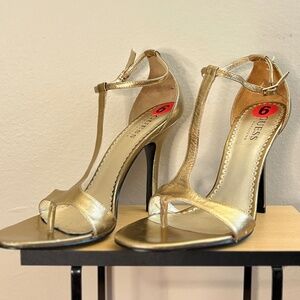 GUESS Gold Metallic T-Strap Stiletto Heels Size 6