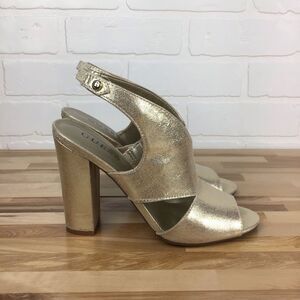GUESS Gold Glitter Open Toe Chunky Heeled Sandals Size 7