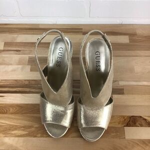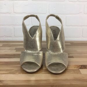GUESS Gold glitter open toe chunky heeled large strappy sandals pumps size 7