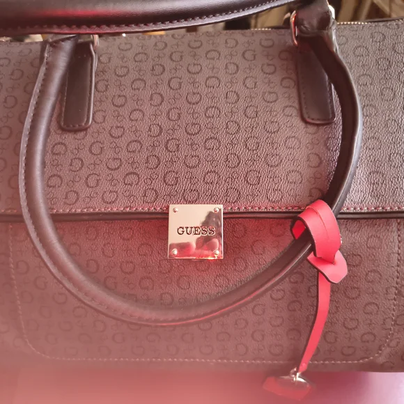 Stylish GUESS Handbag in Gray and black monogram with striking details for work or outings. It is slightly used but worth the luxury. it is a large bag can be used for travel, laptop bag and etc