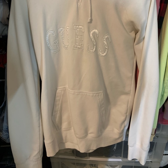 White guess hoodie. It’s pretty old but good condition. I don’t think u can buy it new anymore