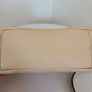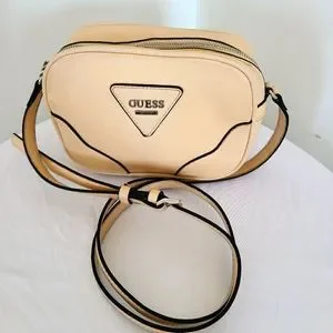 Cute neutral toned handbag from Guess. Long strap, leopard print interior, zip up top, small yet practical. Three tiny marks on the bottom as shown in pics but otherwise in good pre-loved condition.