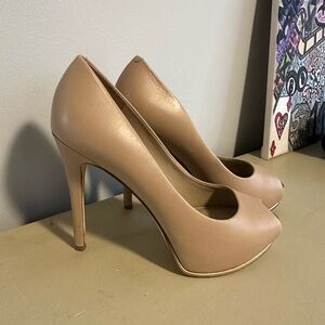 Stylish peep-toe style with platform. Size 8. Worn once.
