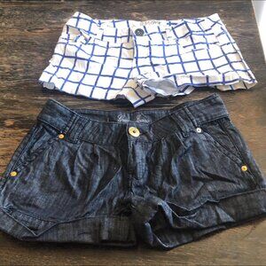 In excellent condition 2 pairs of GUESS shorts size: 26. Fits right under the navel.