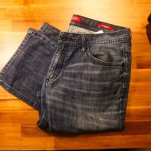 Pair of Jeans by Guess in good condition, the only flaw is a small rip on the front right leg (see pictures) but it’s very minimal and barely noticeable. Other than that they have no stains or smell and are very nice.