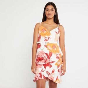 Guess Juleah Mini Floral Dress in Radiant Poppy Print Ivory size 8
