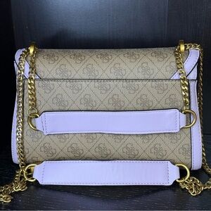 GUESS Katey Flap Shoulder Bag Lilac Rare Quilted Purse Crossbody Lavender Cream