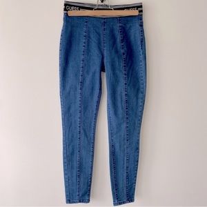 Guess waistband logo denim leggings. Size “S”. Very stretchy and flattering with seam going down middle (front and back).