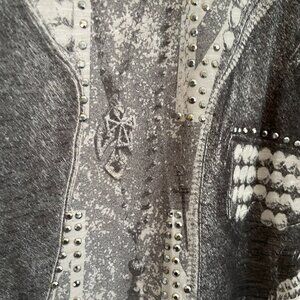 Lightweight semi-sheer fabric with a printed studded jacket design
