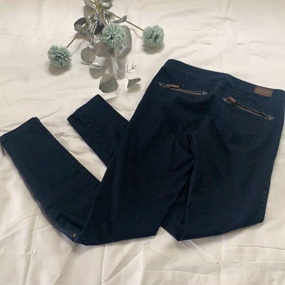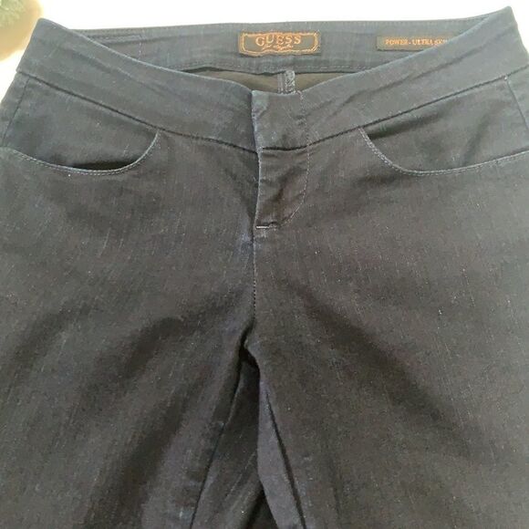 Guess Los Angeles Power-Ultra Skinny Jeans Ankle zip pants, zip and clasp closure front, main clasp closure with extra interior closure optional (sew on your button if you want), back zip with faux leather lining, dark denim, great skinny fit with some stretch. Great condition and quality.