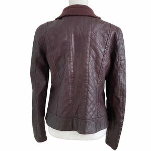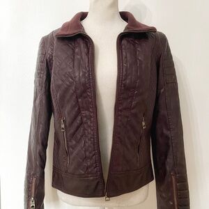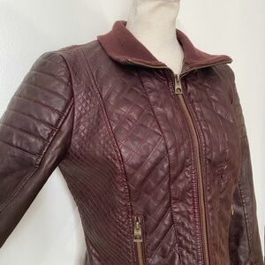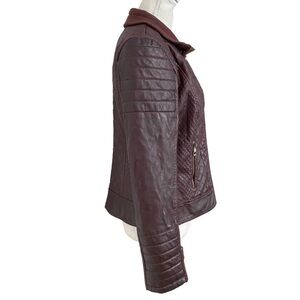 GUESS MAROON Y2K QUILTED FAUX LEATHER ZIP UP MOTO JACKET - M