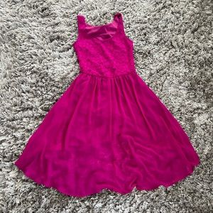 Turn heads in this stunning GUESS magenta dress — vibrant, feminine, and effortlessly elegant. Designed with a flattering fitted bodice and a flowy high-low hem, this piece moves beautifully and adds instant drama to any look. The lace side panels bring a delicate, romantic touch while subtly enhancing the silhouette.