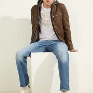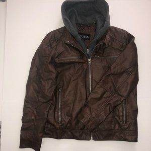 GUESS Men's Faux Leather Hooded Moto Jacket Size L
