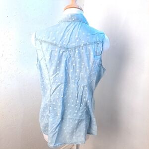 GUESS | Pastel faded blue & white stars sleevless collared button up shirt .
