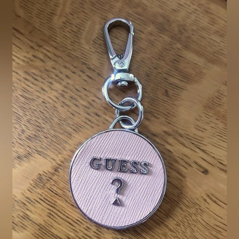 This is a cute pink Guess keychain to add to all your purses, mirror on the back!