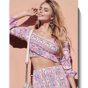 GUESS Pink Paisley Print Festival Inspired Crop Top with Lettuce Detail; Only worn twice & great with jeans or a skirt!