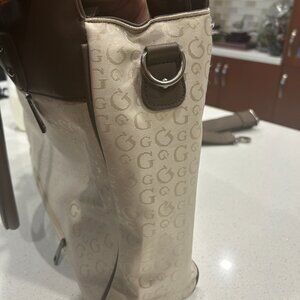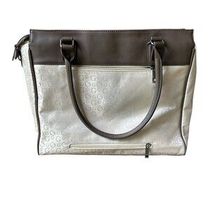 GUESS Pink Tan Brown Floral Patchwork Tote Bag Vegan Leather Large Trendy