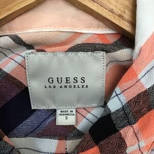 GUESS Plaid Button Down Shirt Women’s Small Ecru Pink Blue Peach Rayon Blend