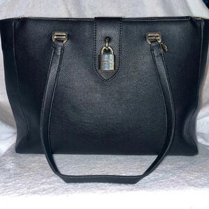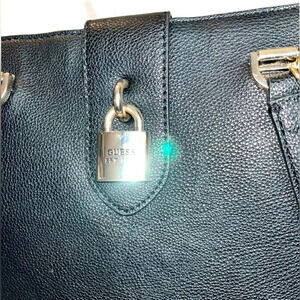This stunning Guess tote combines sleek, modern design with practical functionality, making it the perfect everyday companion. Crafted from high-quality, pebbled black leather, this bag exudes timeless elegance. The distinctive silver lock detail adds a touch of luxury, while the spacious interior offers ample room for all your essentials.