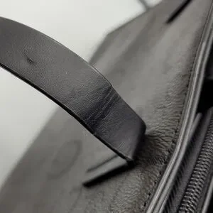 Cracking along the edges, exterior is rubbing off on the corners and filled in a bit with marker. Both shoulder straps are cracking at the base.