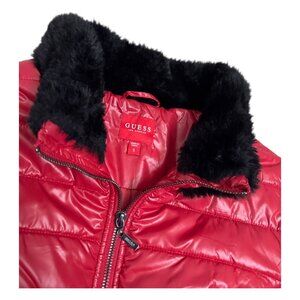 GUESS Red Designer Winter Puffer Parka Faux Fur Collar Jacket Coat