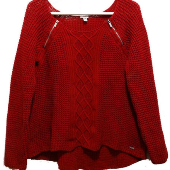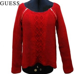 GUESS Red Knit Sweater Zippers on shoulder Style