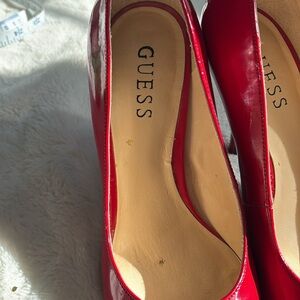 GUESS Red Patent Glossy Silver Toe Heels | Bold Date Night Pumps | Size 6