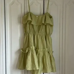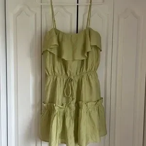 Embrace a casual resort vibe with this Guess sundress, featuring a playful ruffled and tiered design in vibrant yellow and green hues. The sleeveless dress boasts a spaghetti strap and square neckline, perfect for warm weather outings. Its lightweight fabric and cinched waist create a relaxed yet flattering silhouette.