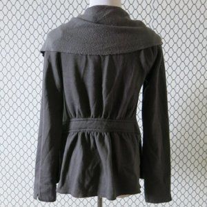 GUESS Ruffle Front Full Zip Gray Long Sleeve Cardigan Sweater - Size Medium