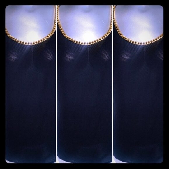 GUESS SHEER BLACK TOP SHORT SLEEVES WOMEN DESIGNER TOP GOLD CHAIN NECK SMALL
