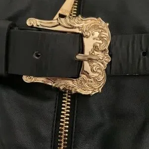 Lots of good detail on this guess high waisted faux leather skirt. Comes with belt, logo’d zipper pulls. Fitted and sexy. 14” waist flat. 19” full length but about 17” from actual waist as it sits up higher. Slightly tapered. Perfect condition, don’t think it was worn.