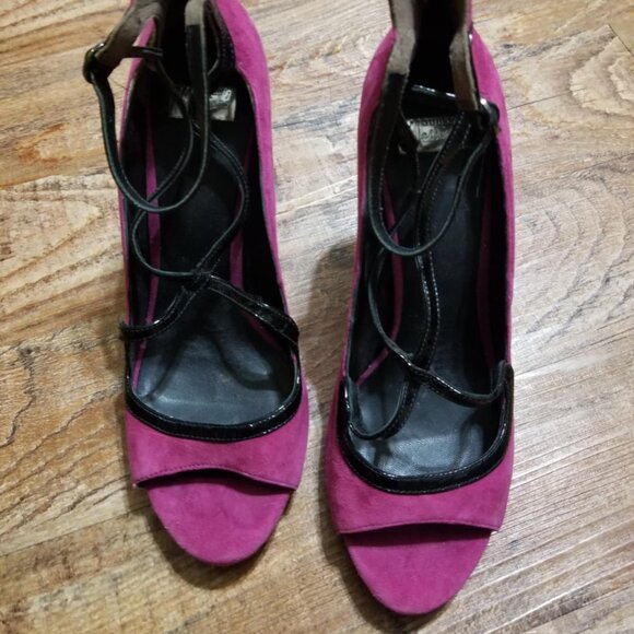 GUESS Shoes 8.5 Purple Pink Suede Stiletto Heel Open Toe Party Formal