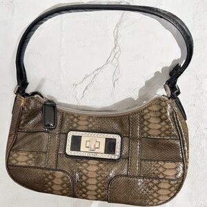 GUESS Snakeskin Embossed Shoulder Bag – Y2K Rhinestone Logo Plate