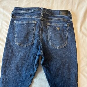 Dark wash, skinny jeans, feature a slightly more curvy fit. Great stretch and still stylish yet comfortable. Very versatile jean!