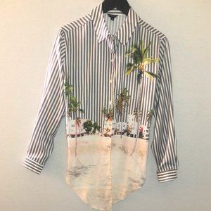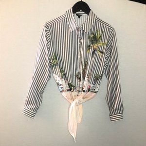 GUESS Striped Dress Shirt with Floral Design; Worn once!