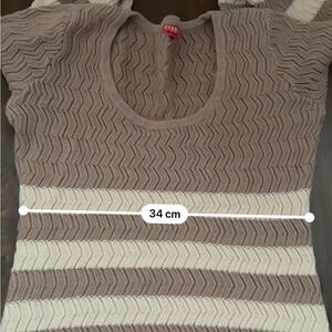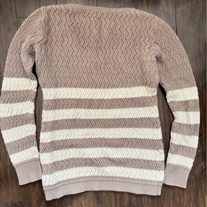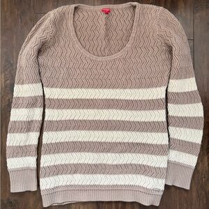 Chic taupe/beige and cream stripes. Soft knit fabric. Ideal for casual wear. US XS. Very cozy, scoop neck, great condition