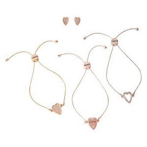 GUESS Tri-Tone Crystal Heart Trio Bracelets, Earring 4-Piece Jewelry Set (O/S)