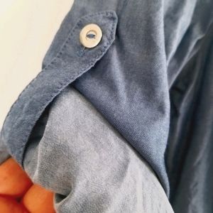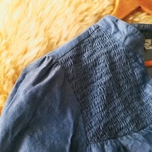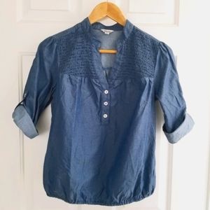 💥GUESS V-Neck Smocked Denim Effect Blouse Size Small