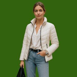 GUESS White Down & Feather Puffer Jacket – Size L (Lightweight Warm Winter Coat)